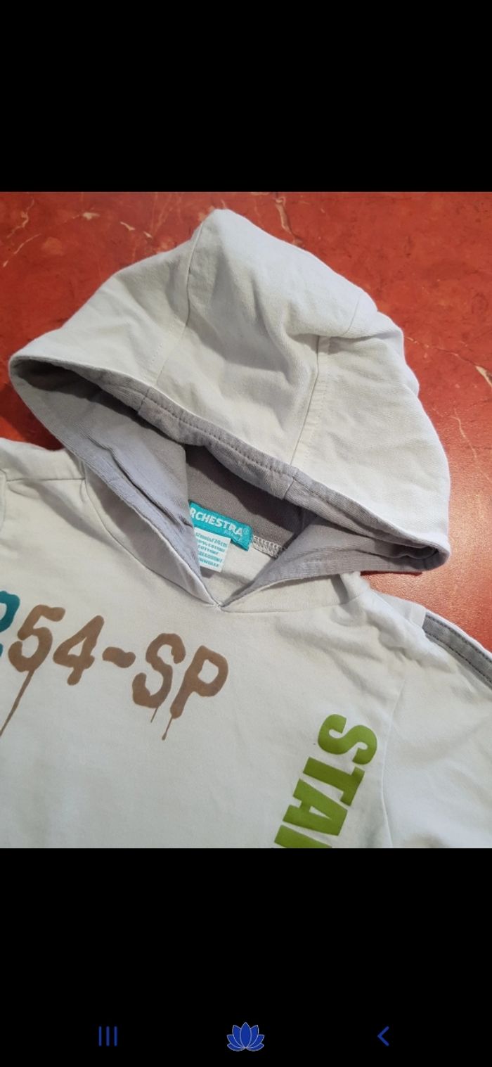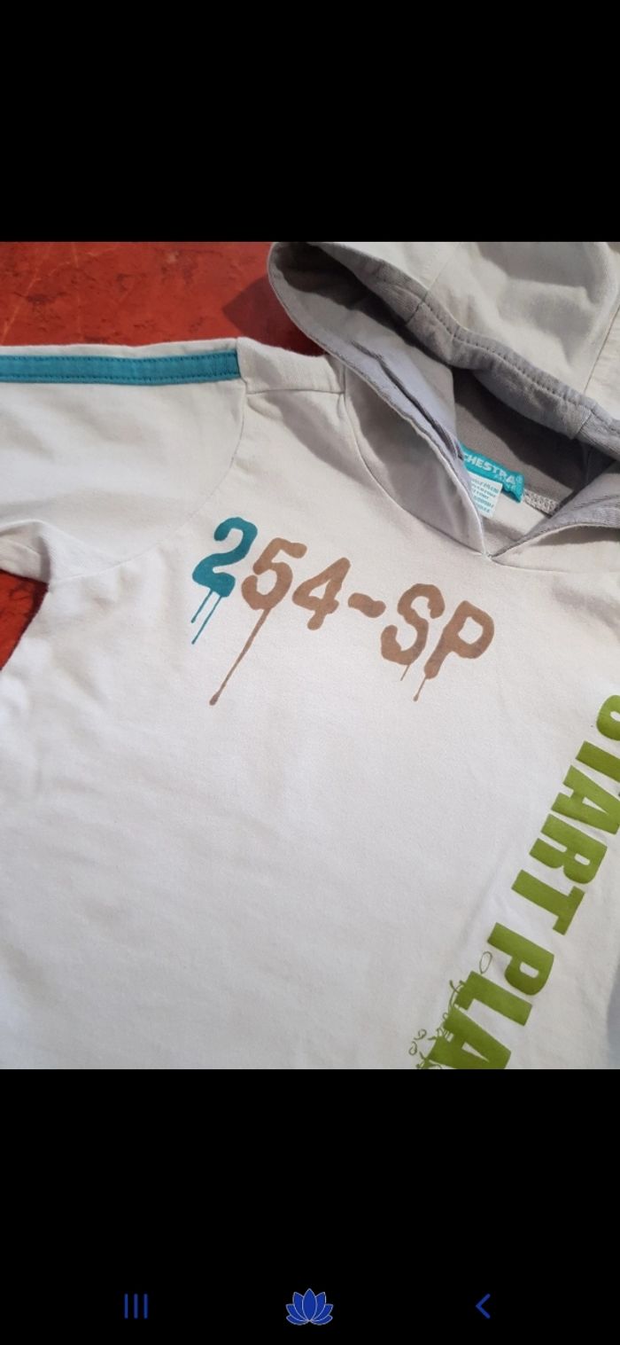 Joli t.shirt manches longues avec capuche. En parfait état. Comme neuf