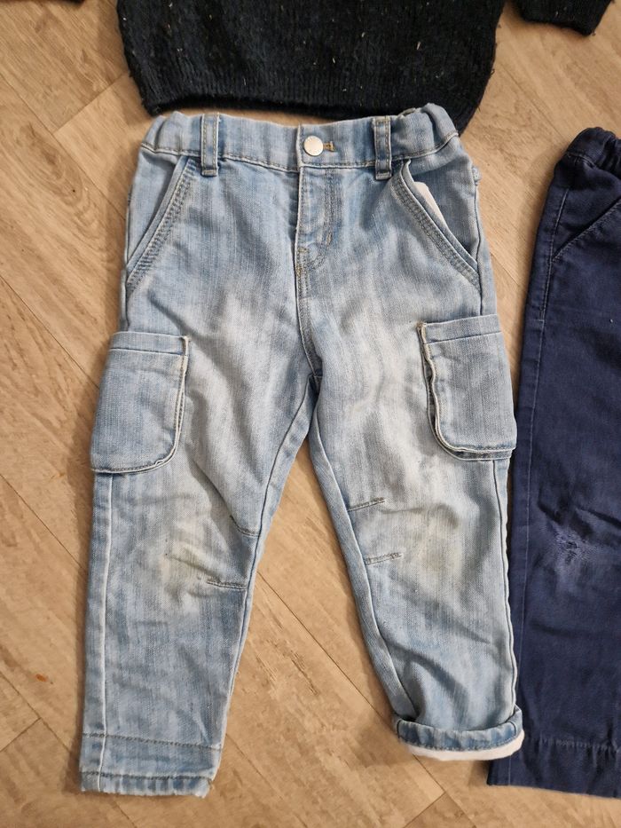 Lot vêtements bébé garçon en taille 23/24mois comprenant : - 1 jeans bleu clair Obaibi - 1 pantalon en tissu bleu marine Obaibi (à réparer sur le genou) - 1 pull en laine bleu marine de la marque Kiabi - 1 salopette en jeans de la marque Obaibi (jamais portée) Tout est en très bon état, sauf le pantalon en tissu bleu marine. Possibilité de casser le lot. N'hésitez pas à me demander pour plus d'informations ou de photos 🙂