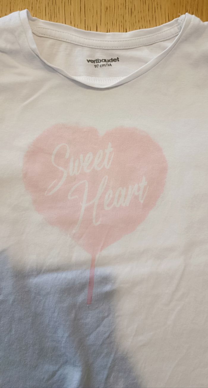 Etat : très bon état aucune imperfection, étiquette intérieure coupée Marque : Vertbaudet Taille : 36 mois / 3 ans 97cm Composition : 100 % coton oeko-tex standard 100 Genre : fille Couleur : écru avec coeur et message "Sweat Heart" imprimés devant Manches courtes Encolure ronde Prix Vertbaudet : 4,99€ Lot possible avec mes autres annonces. Envoi rapide (Mondial Relay) et soigné Ouvert à la négociation Pas d'envoi à moins de 5€ #tshirt #bébé #fille #tshirtfille #tshirtbebe #tshirtbebefille #vertbaudet #vertbaudetfille #vertbaudetfille3ans #3ans #3ansfille #36mois #36moisfille #coton #tshirtcoton #100coton #oekotex #oekotex100 #oekotexstandard100