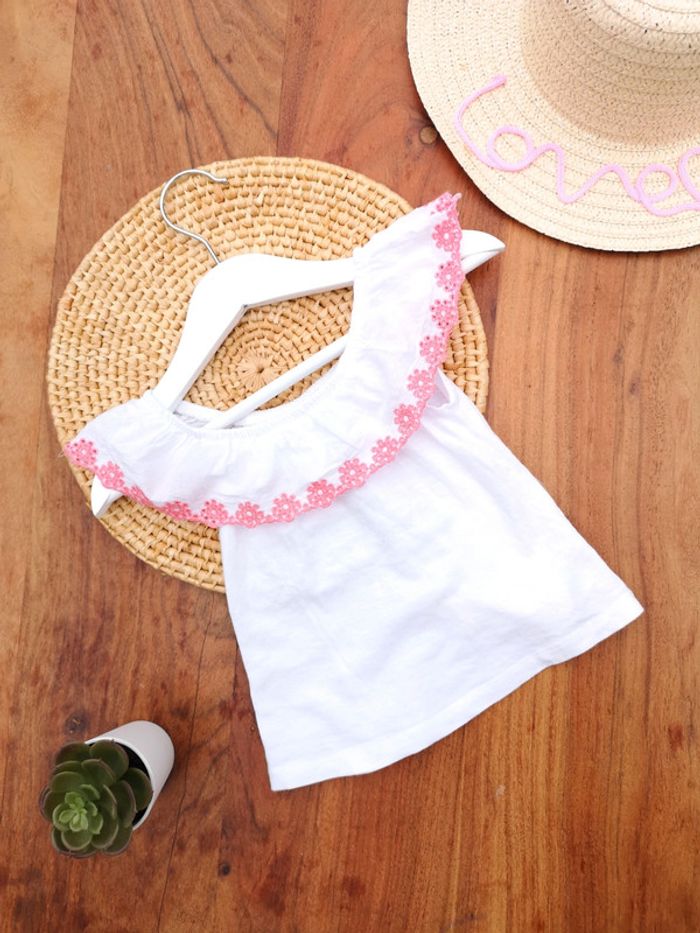 Top blanc broderie rose 6 mois neuf jamais porté juste lavé In Extenso 🌸Vous recevrez votre achat dans un joli emballage soigné 🌸 N'hésitez pas à me suivre, je rajoute régulièrement des nouveautés en #jacadi #jacadifille #jacadibebe #zara #zarabebe #zarafille #kiabi #tao #taofille #primark