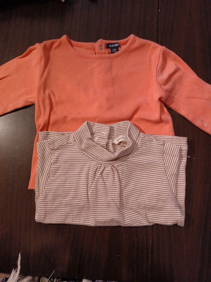 Col roulé à rayures grain de blé Tee shirt manches longues orange kiabi se ferme dans le dos #minnie77710taille12mois