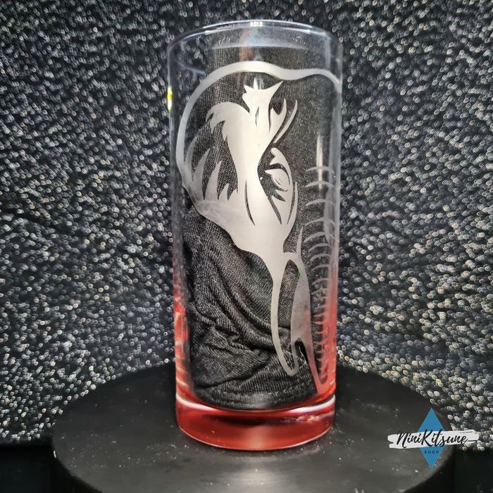 Verre haut, fond rouge, gravé sur le verre à la main 💙 28cl Je réalise toute sorte de gravure sur verre, n'hésitez pas à me contacter pour une commande personnalisé 🥰