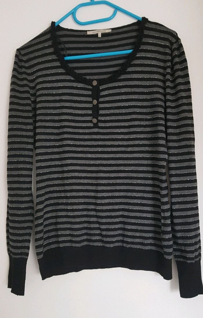 Pull Gerard Darel en TBE, rayé gris / noir et argent, taille 2 (38/40 - M). ☆Réduction pour les lots 😉 -> Autres articles femme ici : #drine35_femme (N'oubliez pas d'annuler tous les filtres sélectionnés pour tout voir).