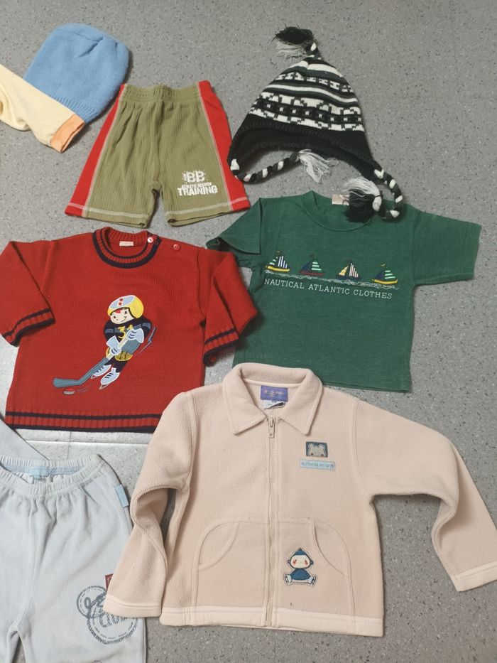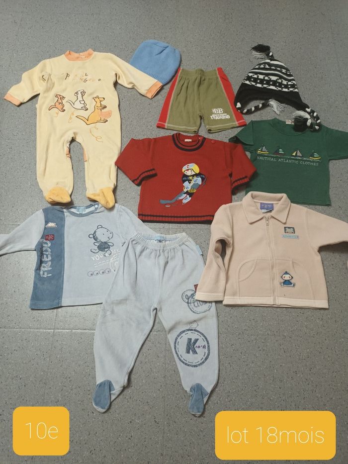 Lot 18 mois 2 pyjamas, une polaire,un pull,un short,un bonnet ,une cagoule,un tee shirt, faudra que je pèse avant validation