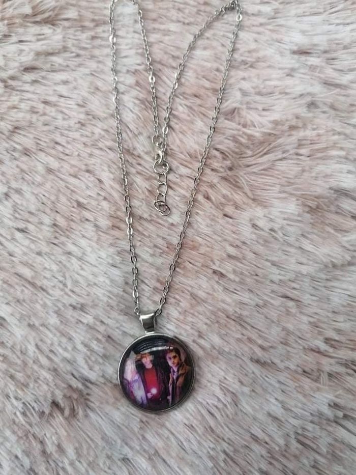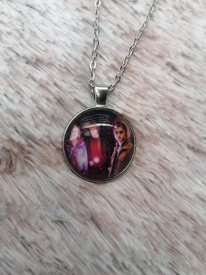 Collier cabochon de 25mm de diamètre représentant Hermione Granger, Ron Weasley et Harry Potter