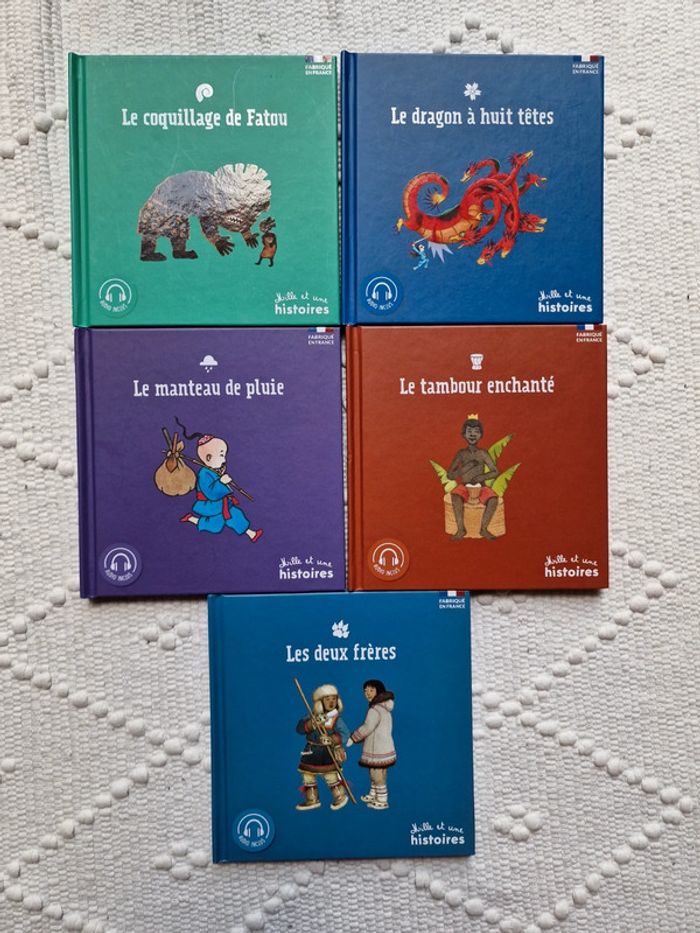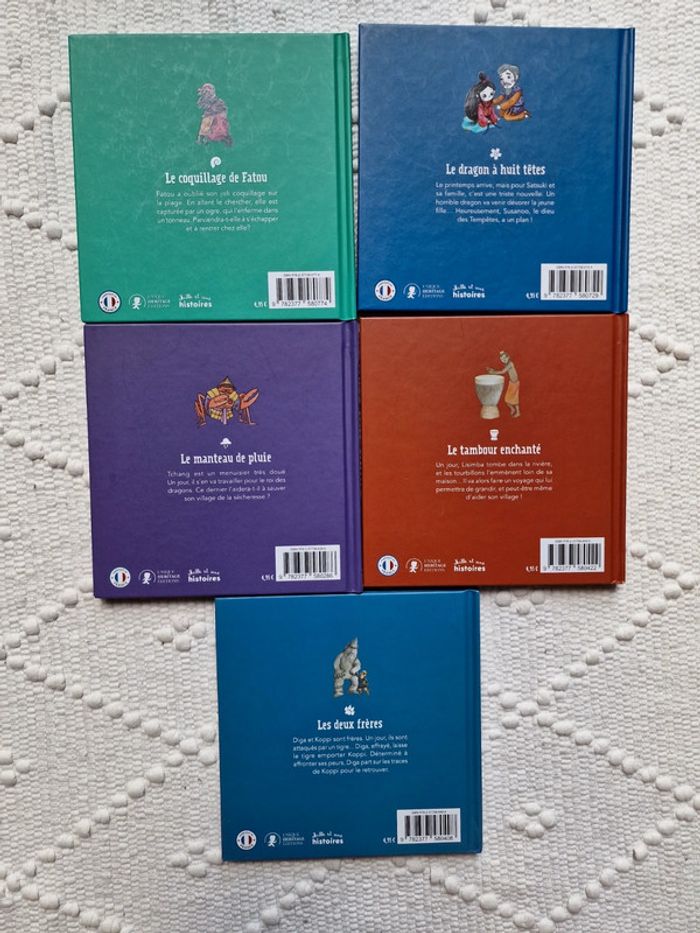 Litterature jeunesse Lot de 5 livres Mille et une histoires - Le coquillage de Fatou - Le manteau de pluie - Le dragon à huit têtes - Le tambour enchanté - Les deux frères Prix à l'unité 4,95 euros Je fais le lot à 15 euros #littératurejeunesse #livresenfants #milleetunehistoires #uniqueheritageeditions
