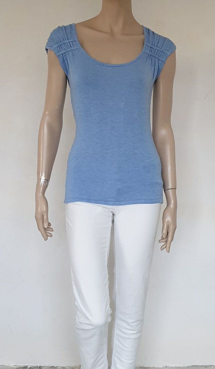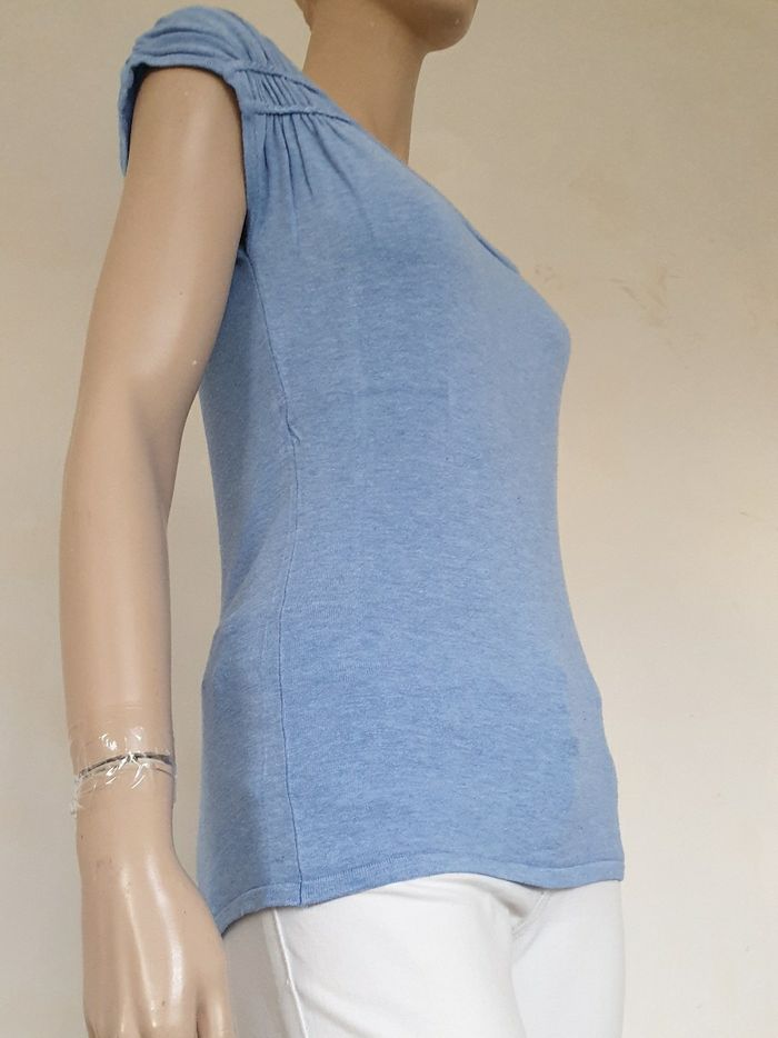 Un pull bleu ciel manches courtes de 61cm de long Aisselles à aisselles 43cm Épaules froncées Naf Naf Taille M