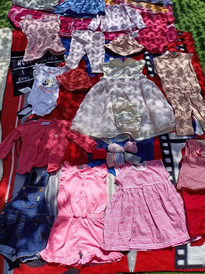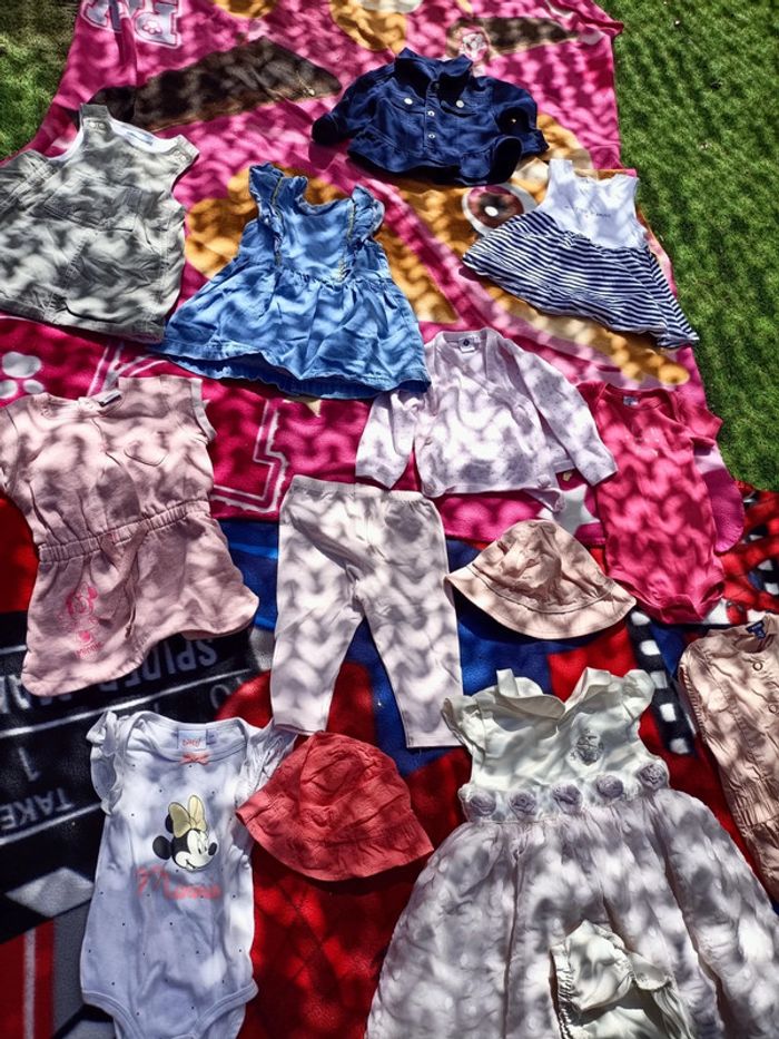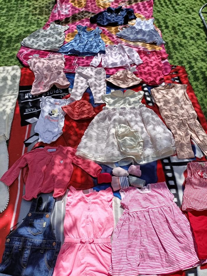 Vend lot 6 mois été fille comprenant 23 articles : 2 chapeaux , 5 paires de chaussettes , 1 salopette , 1 gilet , 2 combinaison , 6 robes , 2 boddys , 1 pantalon , 1 ensemble , 2 gilets , 1 veste