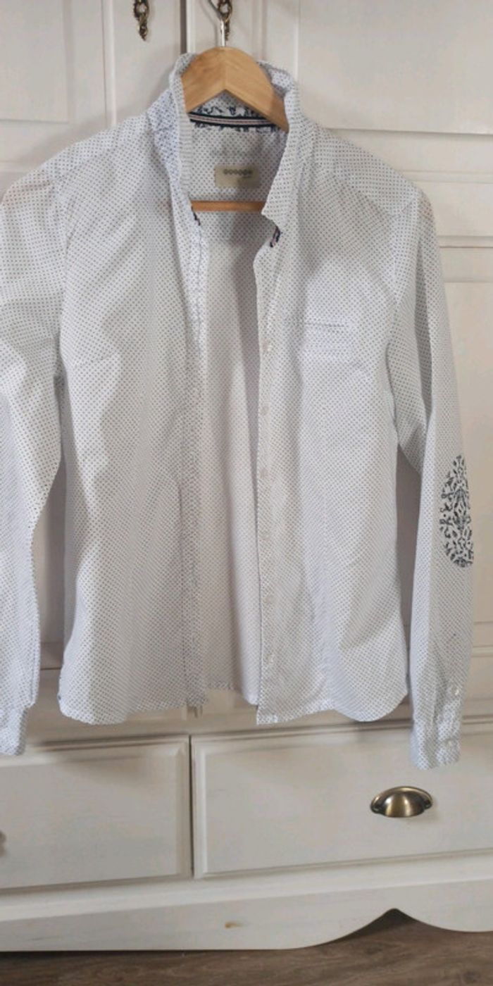 Chemise blanche à pois Bleu marine bonobo Jolis détails au niveau des coudes Très bon état Taille M