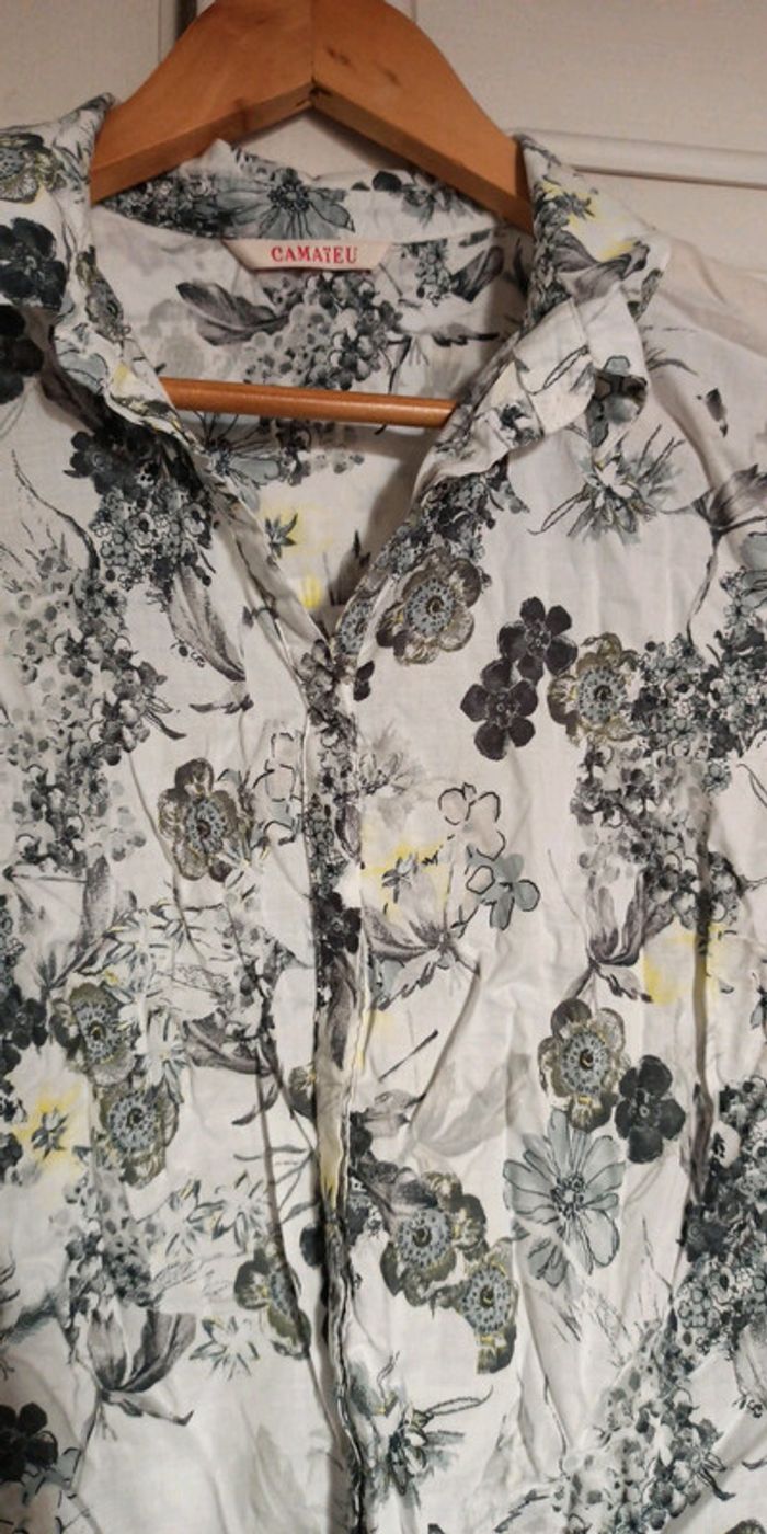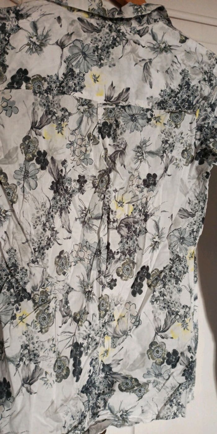 Chemise imprimé Fleuri Taille 40 Camaïeu Très bon état Fond blanc avec fleurs grises et jaunes pales