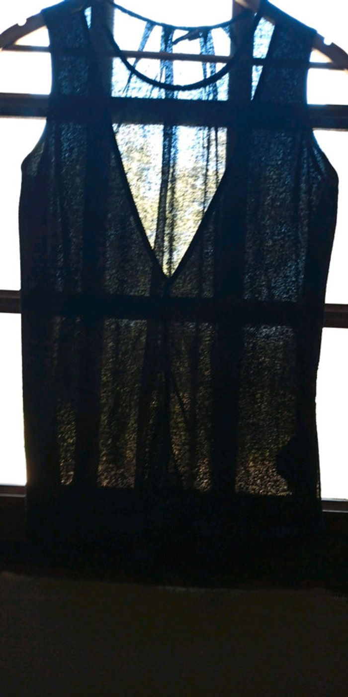 T-shirt avec effet superposition transparent (décolleté en V) Noir Taille S