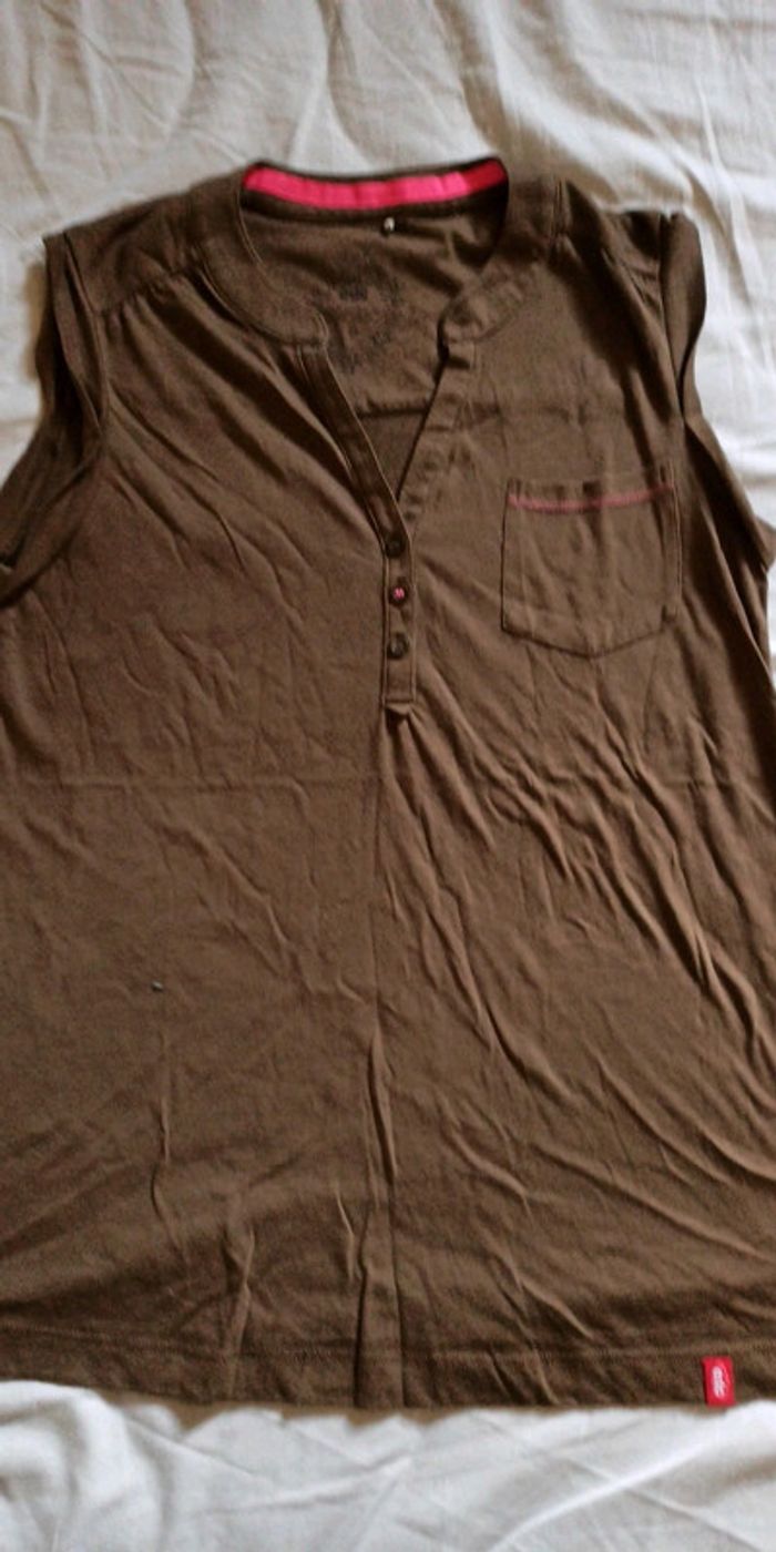T-shirt sans manches EDC by esprit Marron avec Couture sur la poche rose fushia Taille S