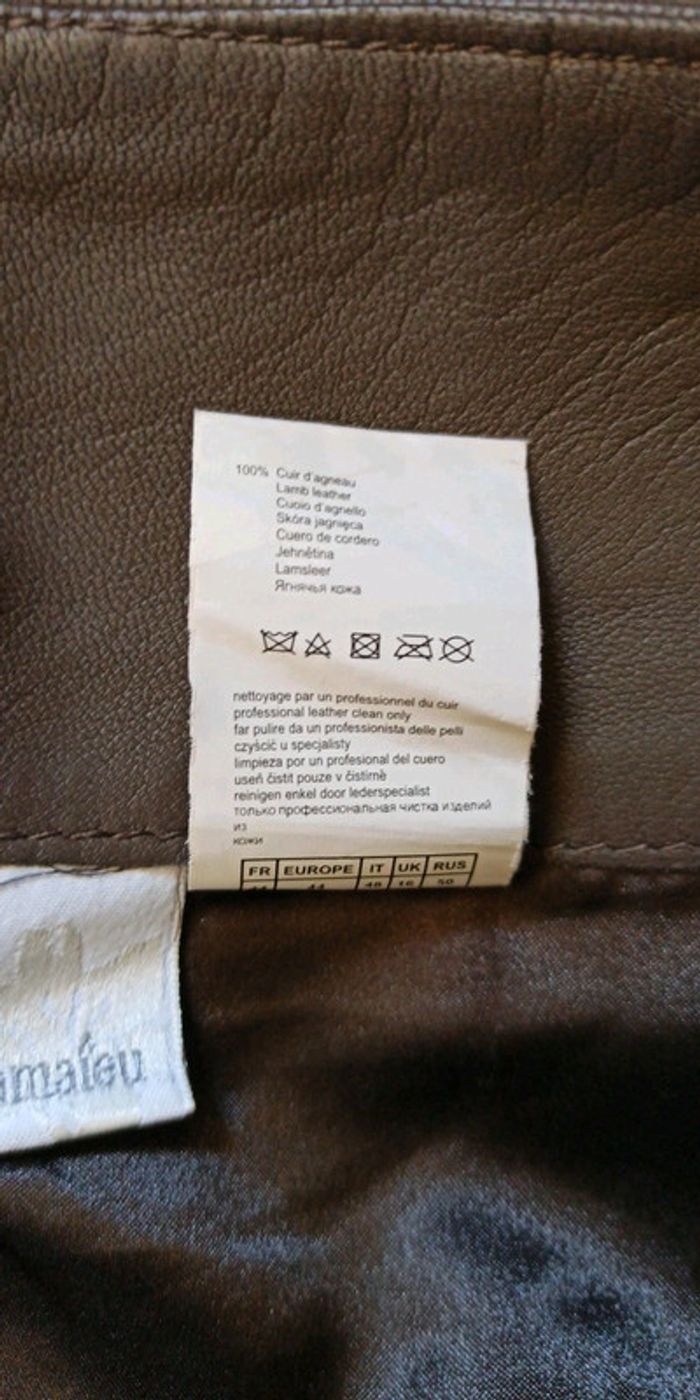Jupe en cuir Couleur taupe Taille 42 Bon état, un petit accros voir photo