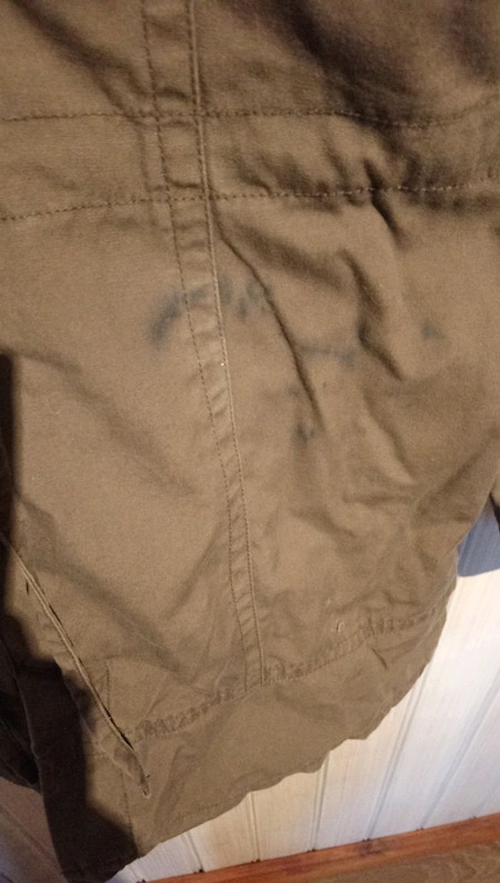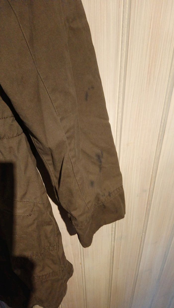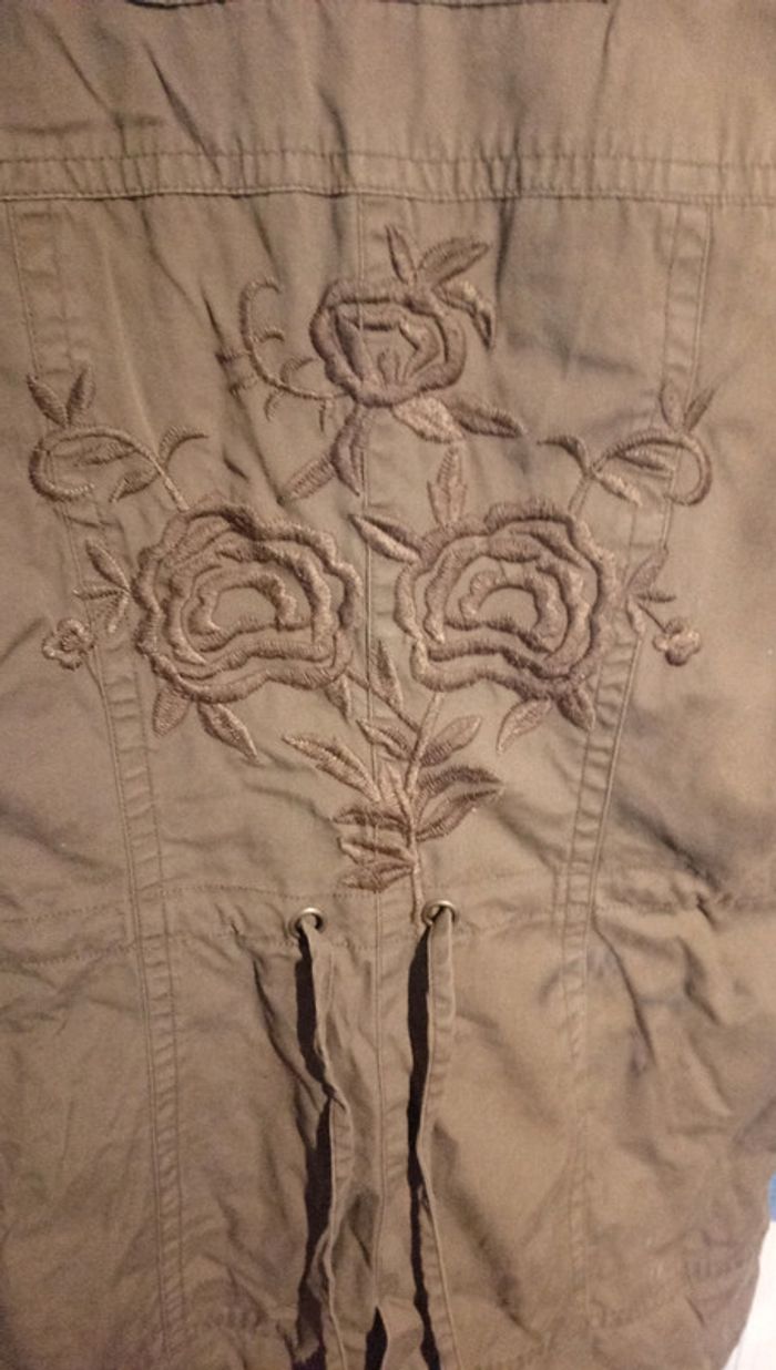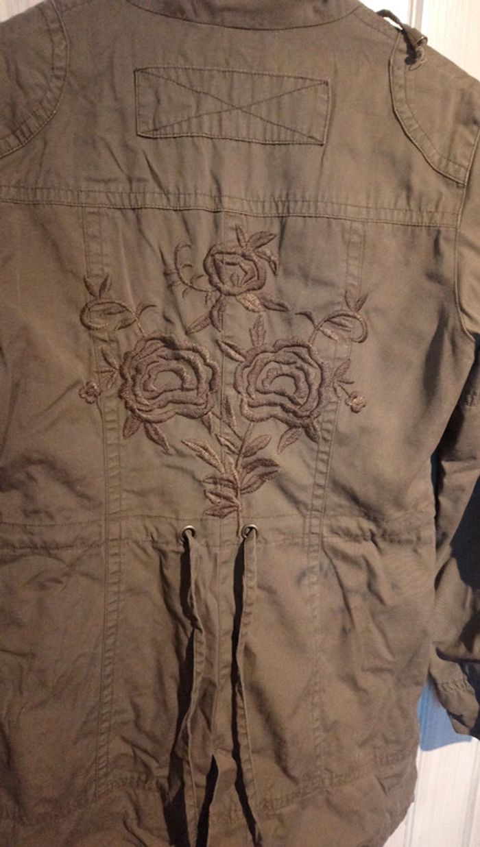 Parka légère camaïeu Kaki Broderie de fleurs dans le dos Bon état général mais attention ⚠ : tachée dans le dos et la manche du bras droit. Tache d'encre (je pense ???) - voir photos