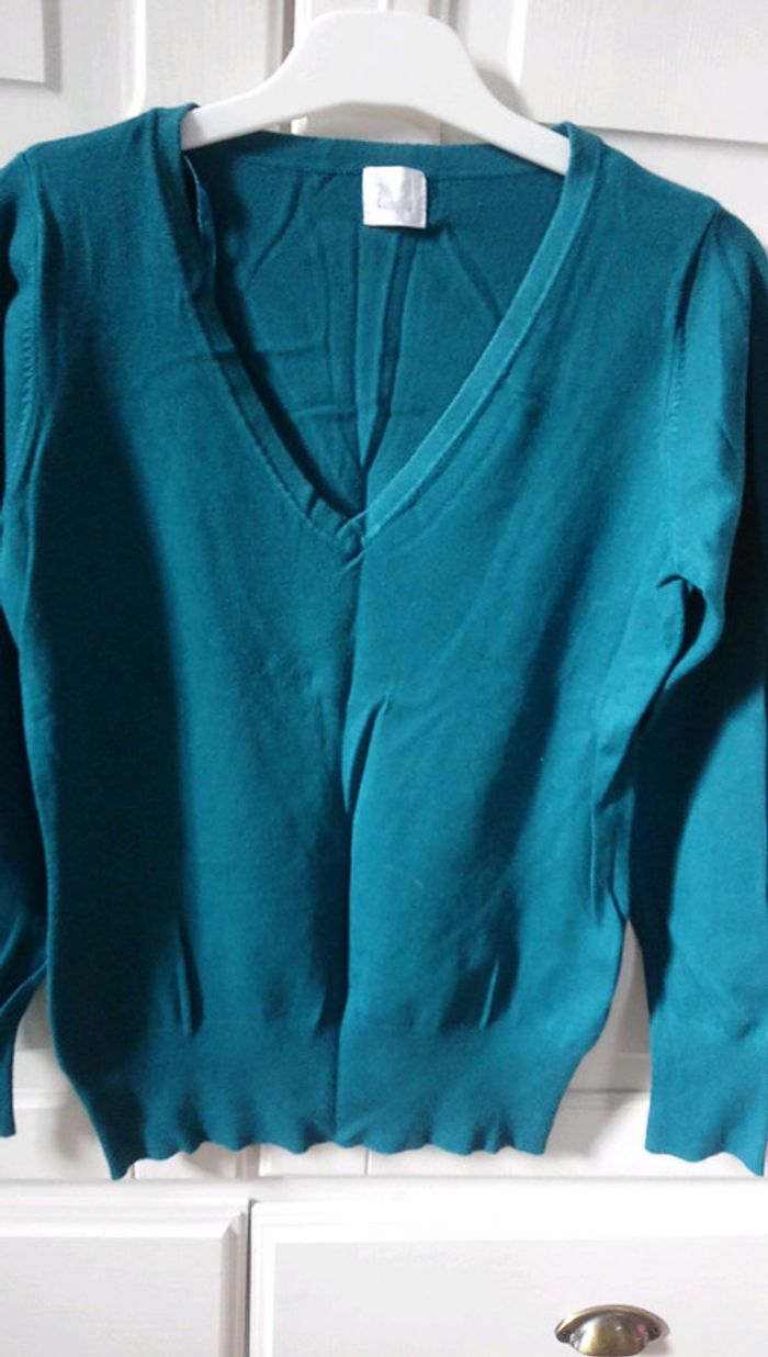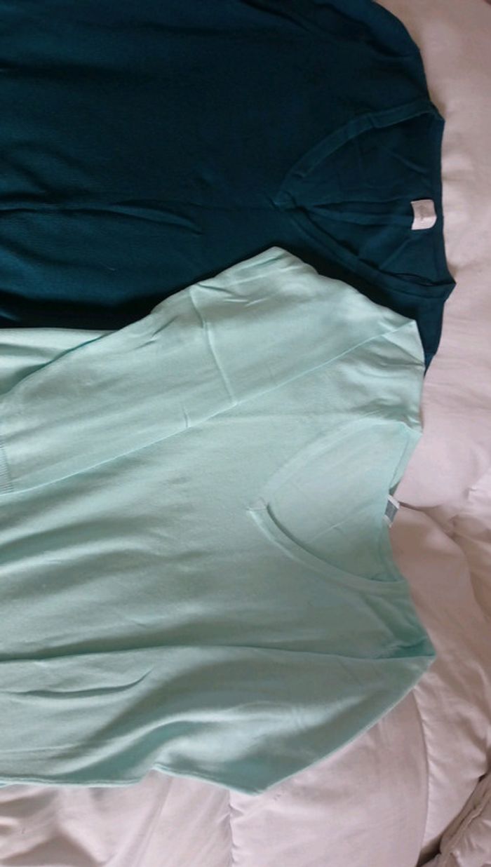 2Pulls col v Camaïeu Coloris turquoise Très bon état Taille 2 (38/40)