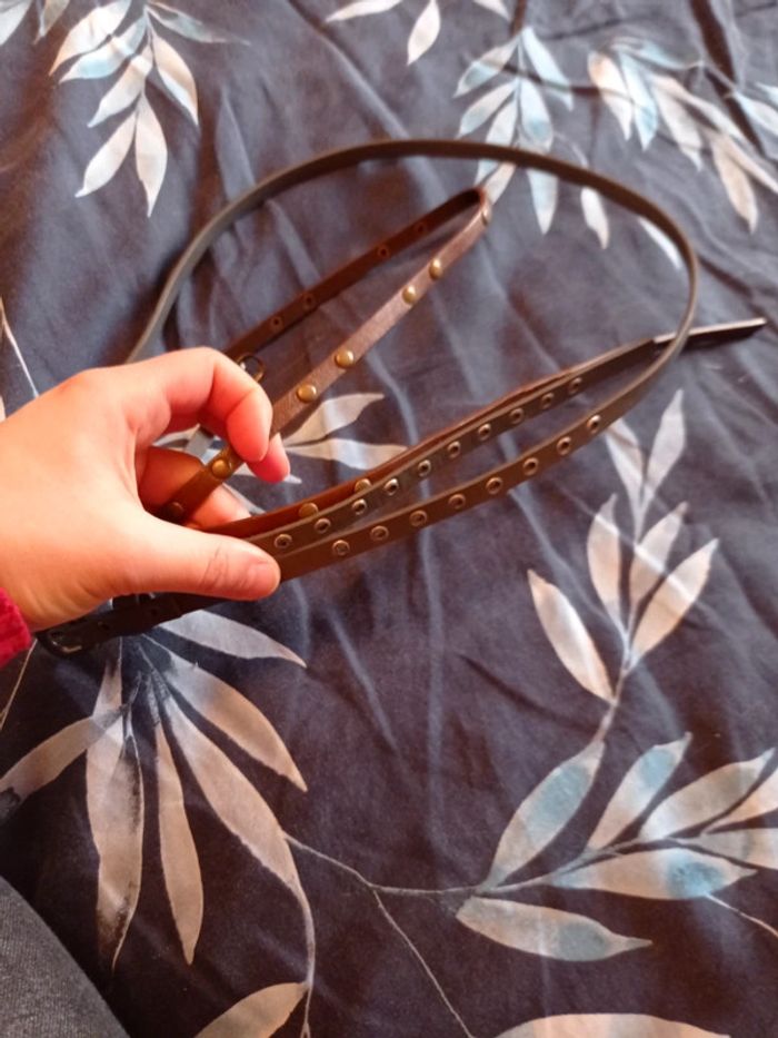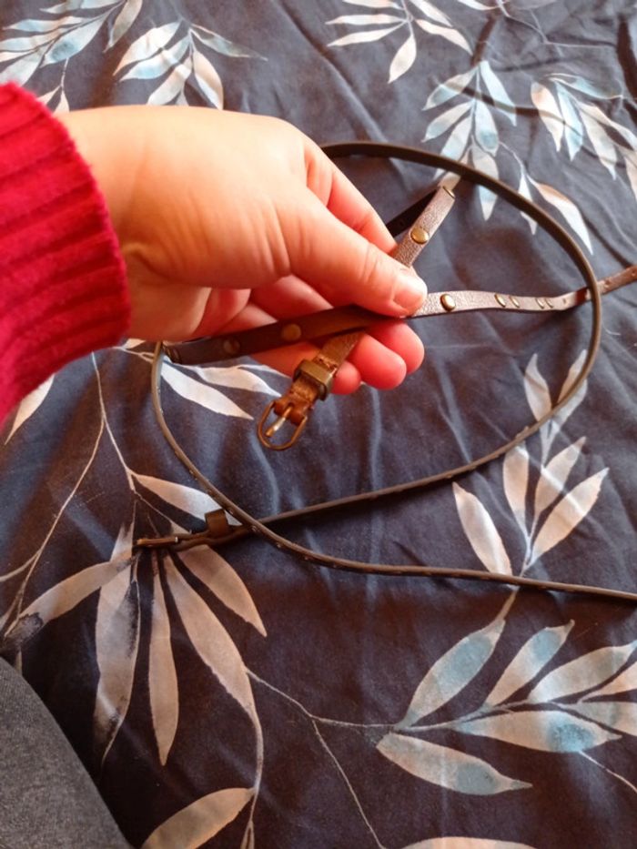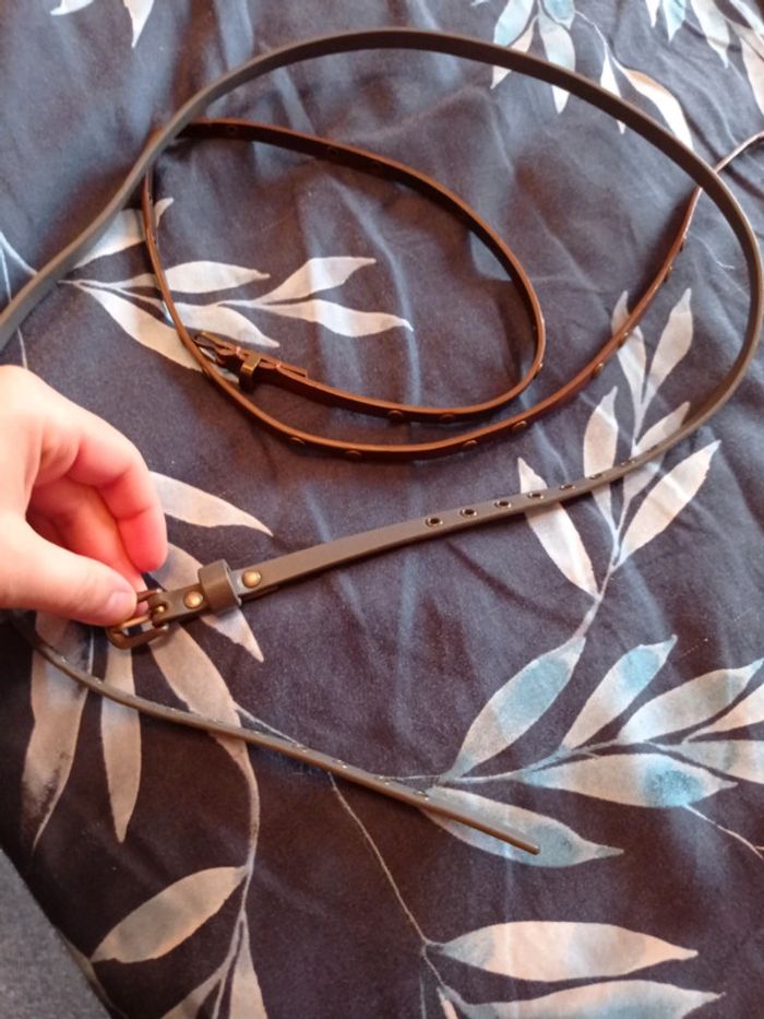 Bonjour A vendre deux petites ceinture Très bon état Une marron et une grise Ceinture très fine pour robe ou jupe ou pantalon Possibilité de vendre séparément