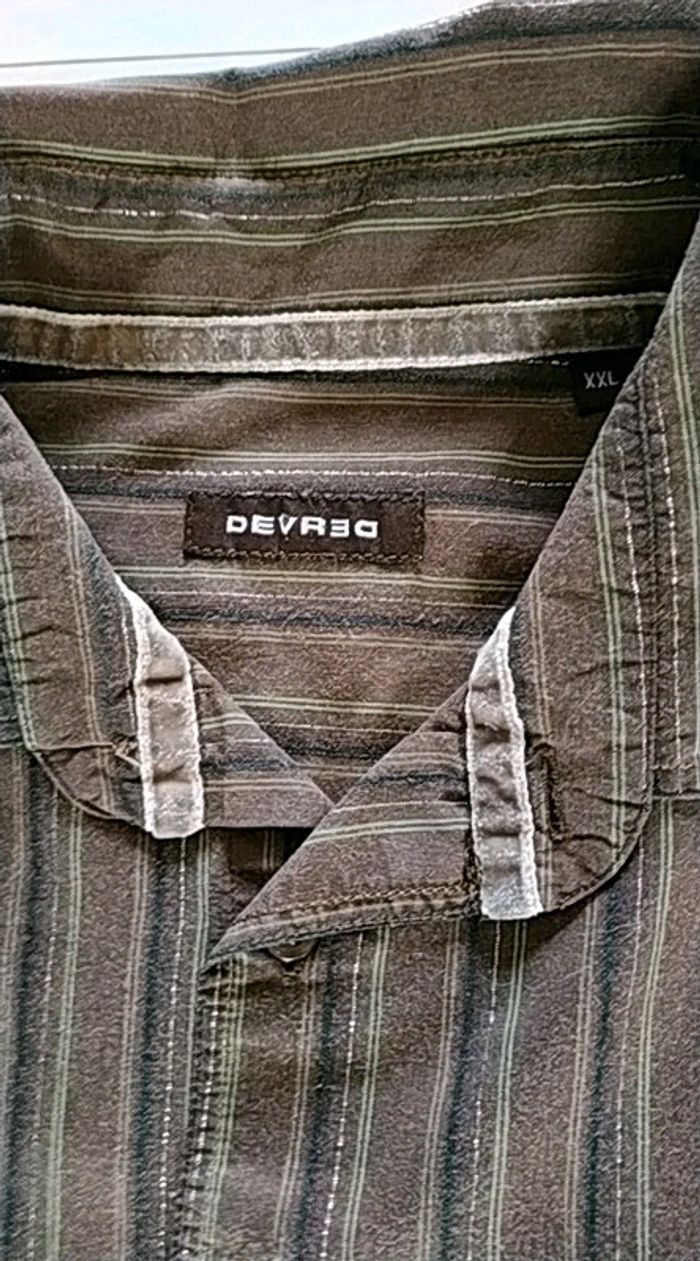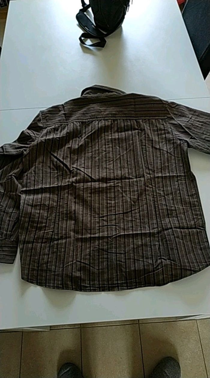 Chemise marron Devred, étiquette XXL mais fait plutôt un XL. Rayures un peu brillantes. #tailleXLdiaboloflo #chemiseHommediaboloflo