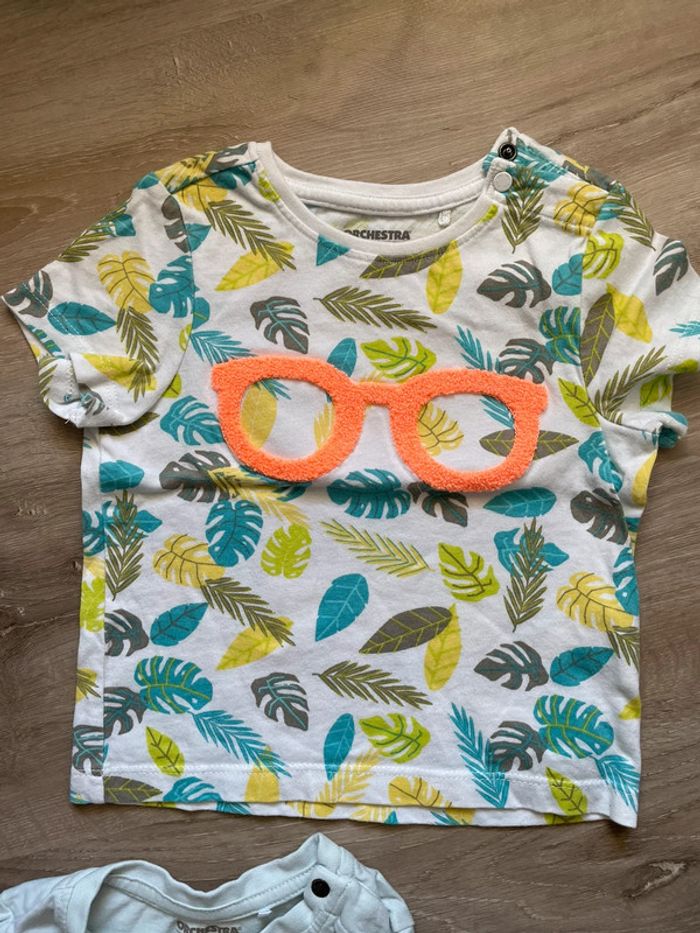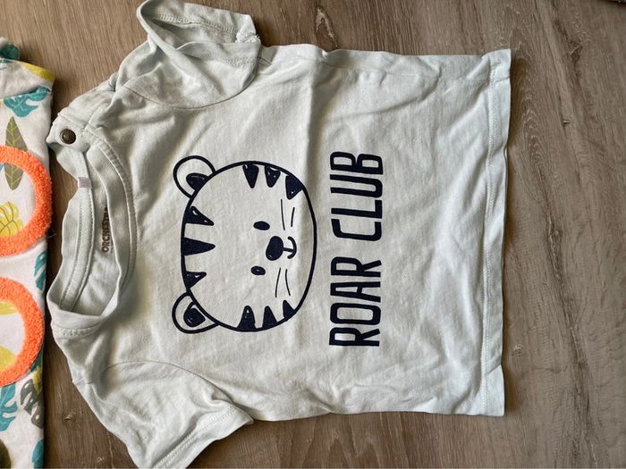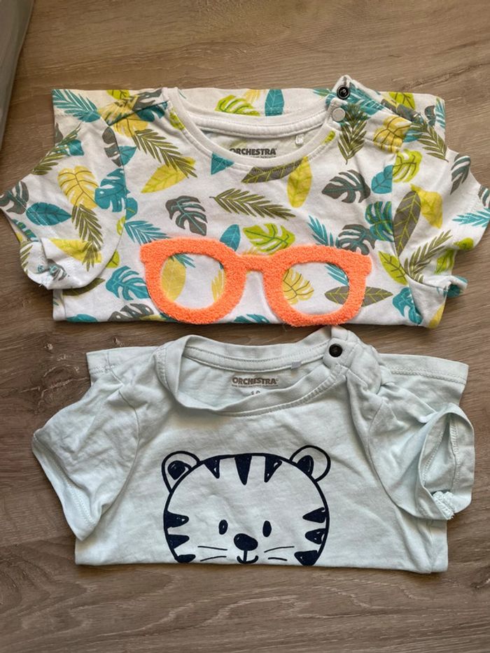 2 tee-shirts garçon 18mois. Les deux sont neufs, juste lavés. #teeshirtgarcon #teeshirt18mois #ete2024 #orchestra #lunettessoleil #roarrrrrr