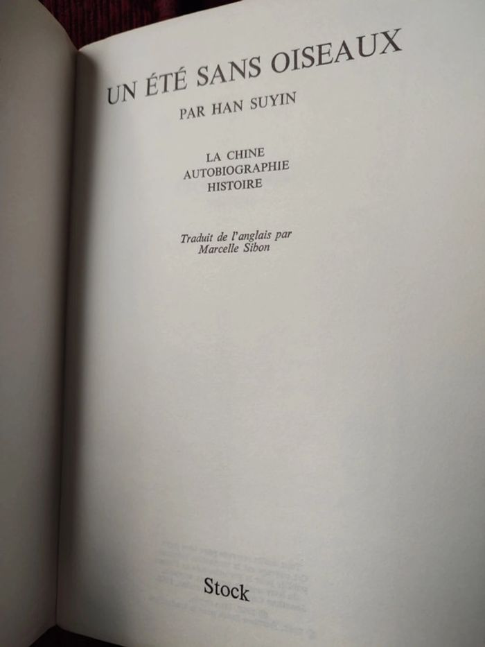 Livre "Un été sans oiseaux" - Han Suyin - photo numéro 4