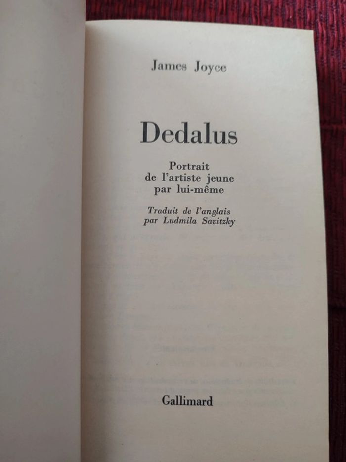 Texte intégral Dédalus, portrait de l'artiste jeune par lui-même traduit de l'anglais par Ludmila Savitzky Titre original : a portrait of the artist as young man édition Gallimard 1943 pour la traduction française Il a un accroc sur la couverture derrière, vu à l'image. L'intérieur du livre est en bon état