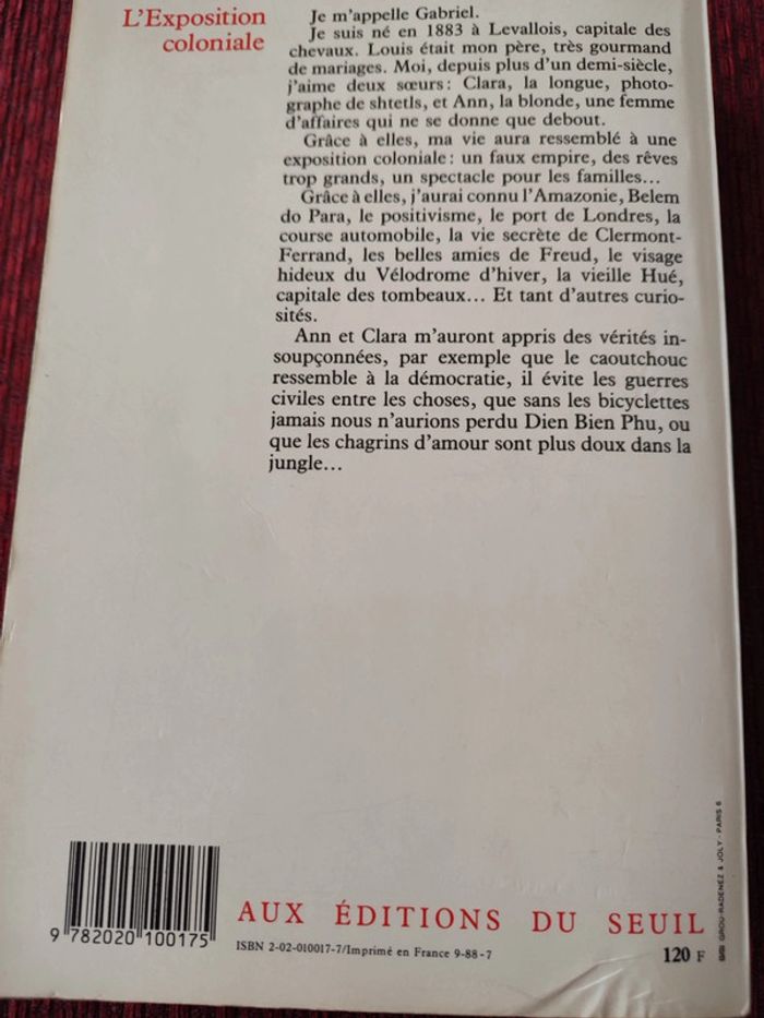 Dans l'état Résumé : Un père libraire fantasque, incorrigible séducteur, une grand-mère qui ne pense qu'aux colonies… la famille de Gabriel se nourrit de rêves. En cette fin de XIXe siècle, le jeune homme choisit la science et la modernité, saisit la première occasion de fuir et embarque pour le Brésil où se joue le formidable hold-up botanique du caoutchouc. Mais la passion amoureuse n’est jamais loin. Lors d’une tempête, il rencontre deux sœurs imprévisibles, Ann et Clara. Comment faire de sa vie une exposition coloniale ? Prix Goncourt 1988