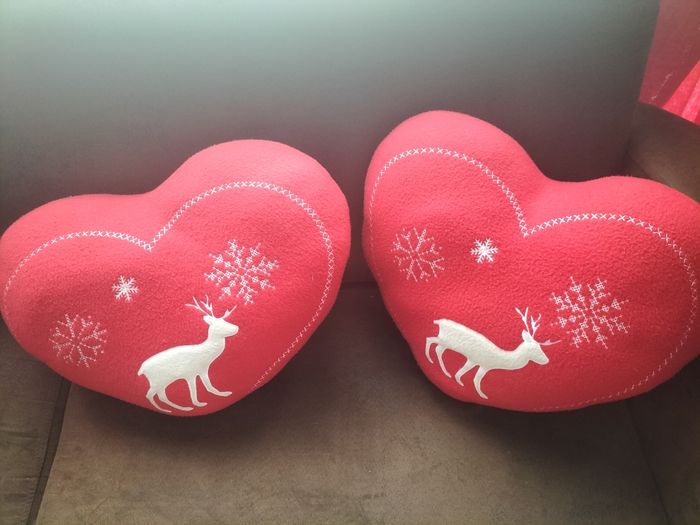 2 gros coussins forme coeur Pour une déco chalet Très bon état 15€