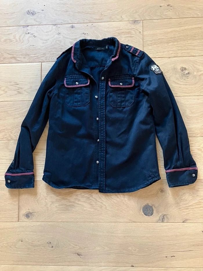 Très bon état, couleur bien noire, non décolorée, taille 8 ans, marque IKKS, nombreux détails de la marque. Galons aux épaules. Peut se porter en chemise ou sur chemise. Envoi rapide via mondial relay mais possible autre envoi.vendue lavée et repassée