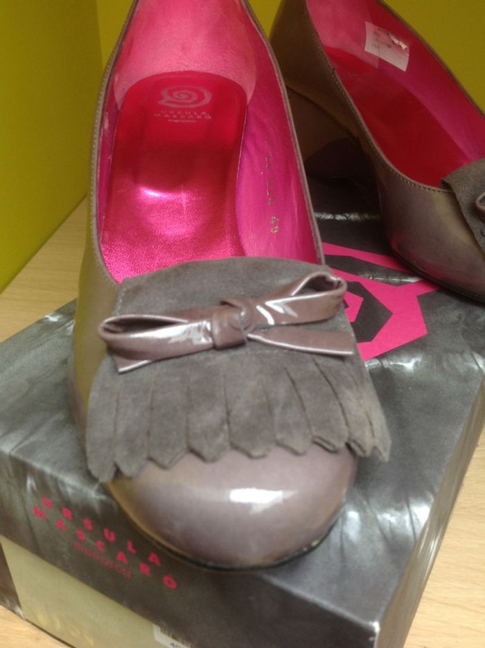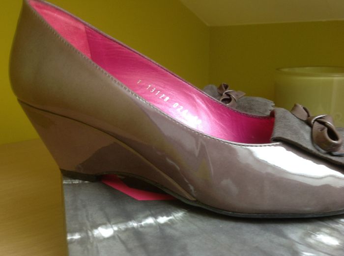 Porté 1 fois pour une occasion valeur d achat 205€, encore l étiquette de prix à l intérieur, juste un mini accro à peine visible porté , sur le talon de surcroît réparé ( voir photo), semelle intérieur impeccable, dans sa boite dorigine marque italienne Ursula mascaro