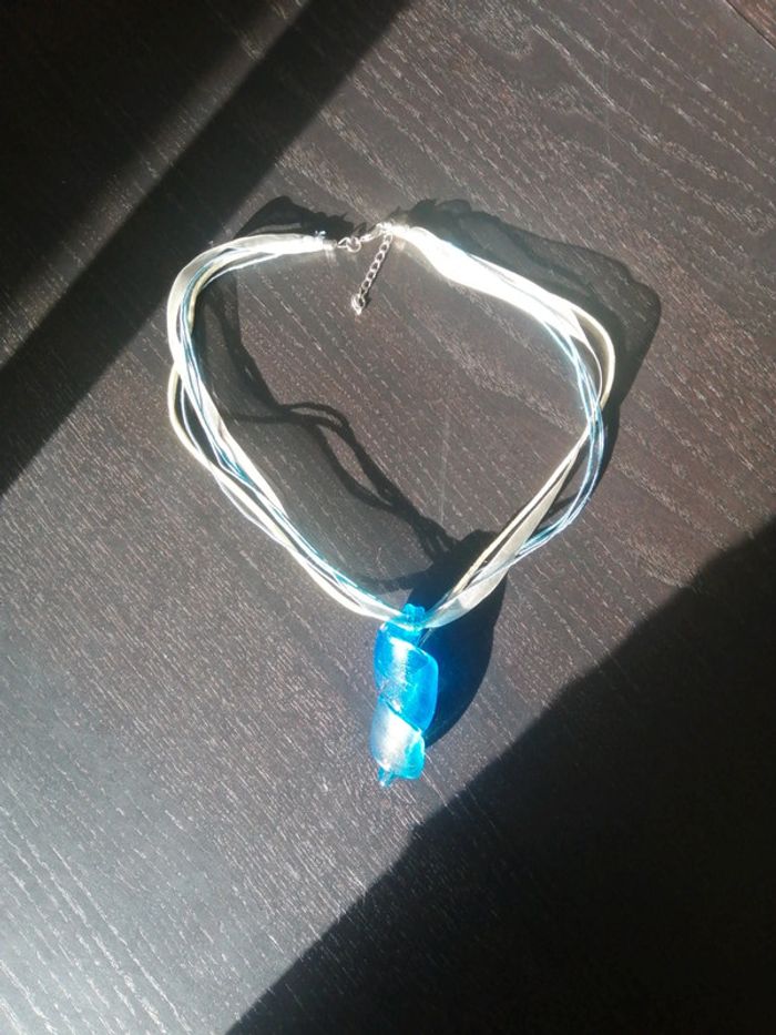 Collier Bleu Pendentif en verre Jamais porté