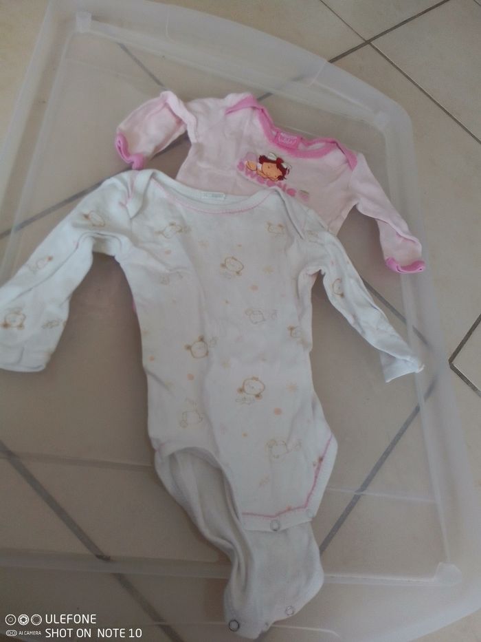 Vends Lot body 6 mois 1 body blanc avec des nounours 1 body Charlotte au fraise Très peu servi