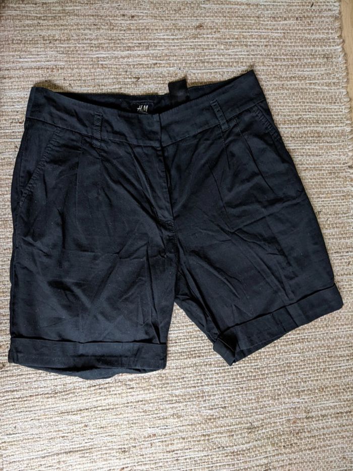 Bermuda noir habillé H&M Pinces, revers au bas, braguette zippée, poches plaquées Comme neuf, porté 1 seule fois