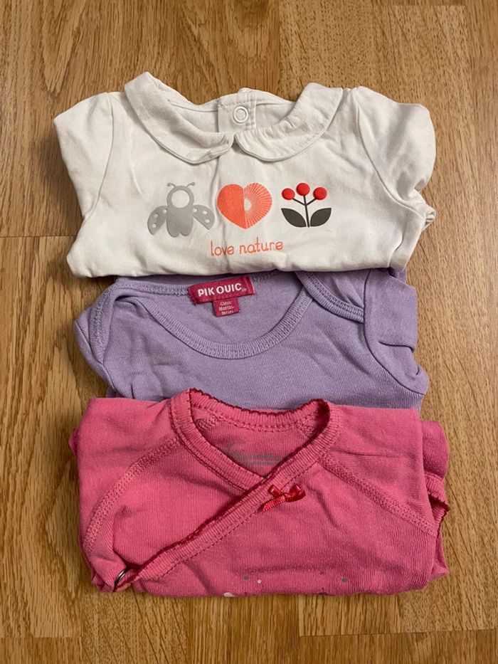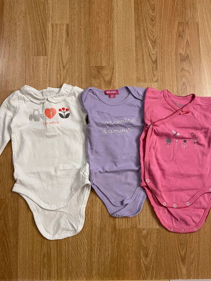 Lot 3 bodies 6 mois Manches longues Bébé filles Marques : obaidi, pommette, pic ouik