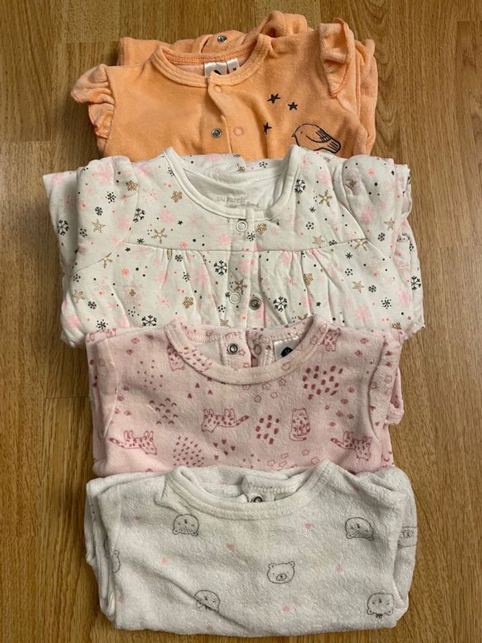 Lot 4 grenouillères 1 mois Bébé fille Marqués : Z kids, DPAM, Tex Très bon état