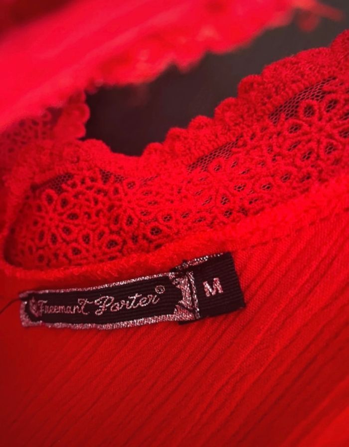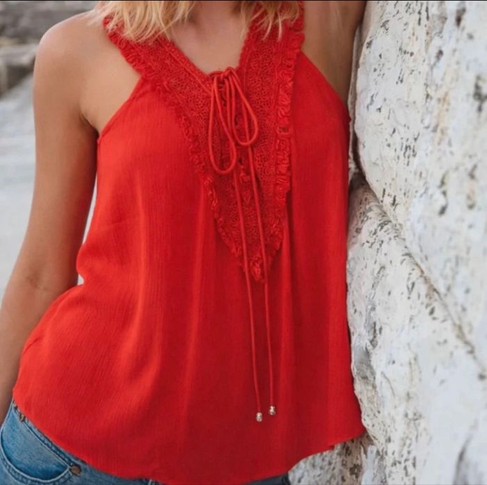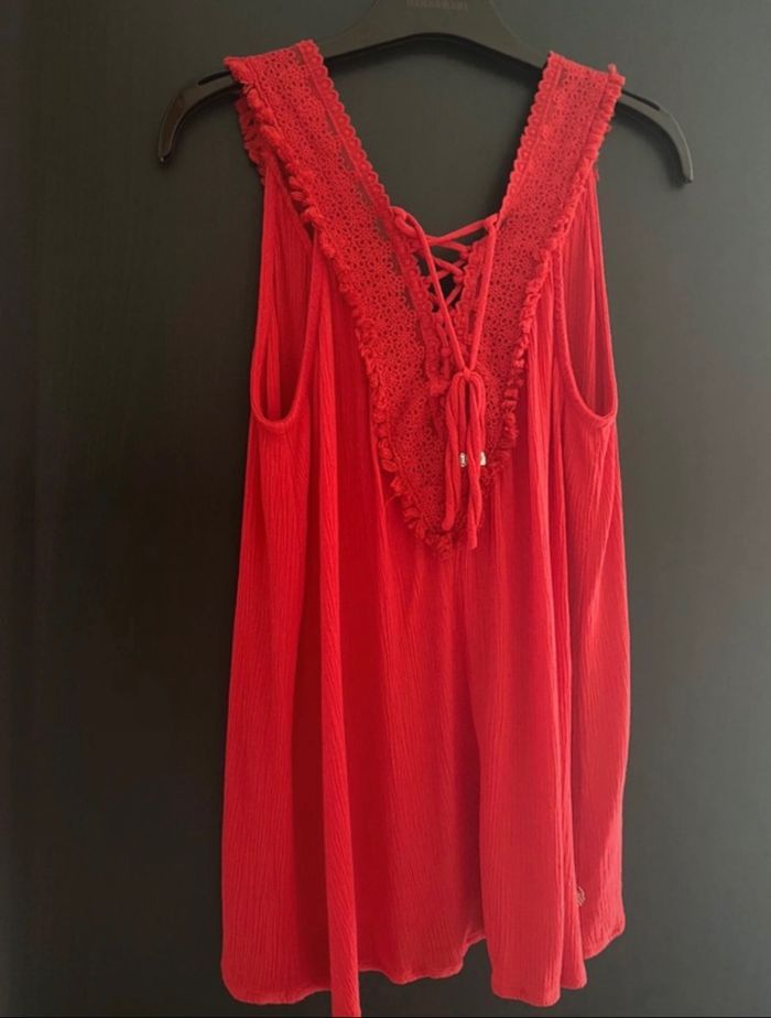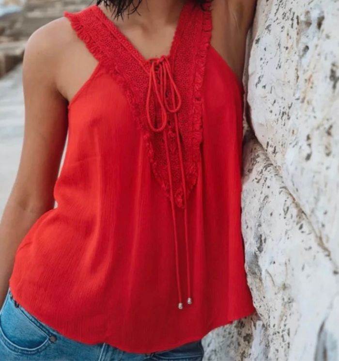 Petit top sans manches, neuf Taille M / 38 by Freeman T Porter Décolleté en V, avec laçage, accompagné de dentelle à franges. Coupe un peu évasée, look chill
