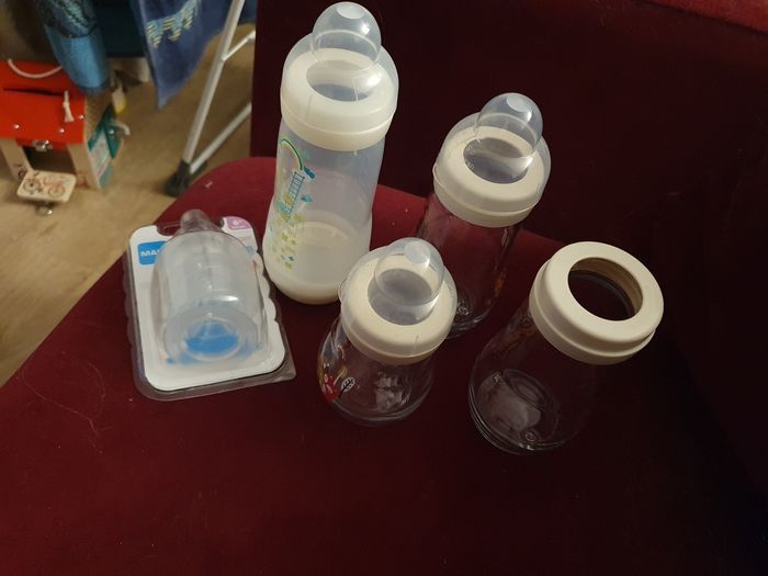 Hello, Je vends un lot de biberons mam avec des tétines X et une tetine 2 neuves Pour toutes informations vous pouvez me laisser un message 😀