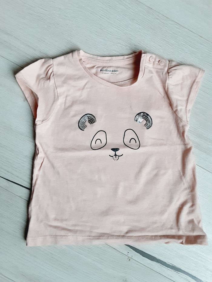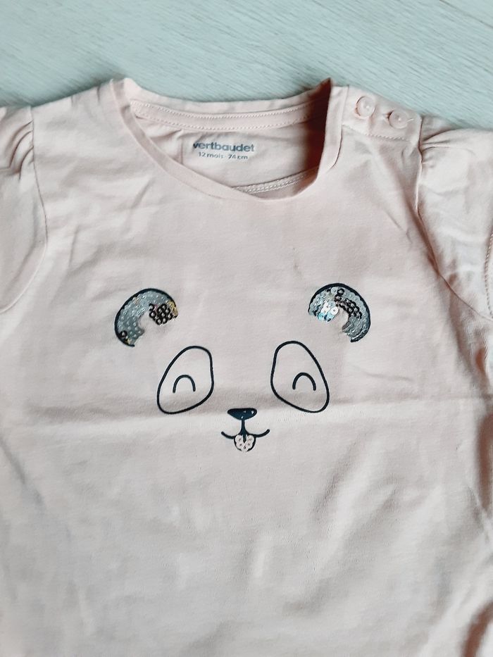 Vêtement bébé fille tee-shirt manches courtes Vert Baudet panda sequins 12 mois 1 an - photo numéro 1