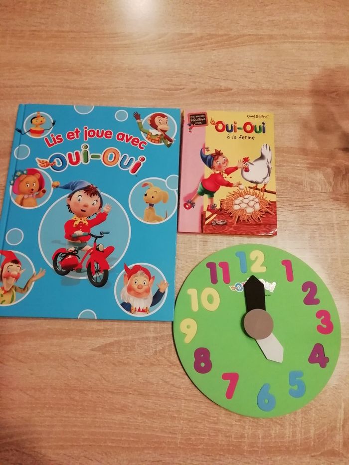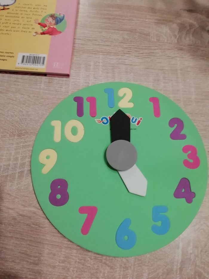 Petit ensemble de oui dont un livre d activité 1page faite 1 horloge en mousse et un livre
