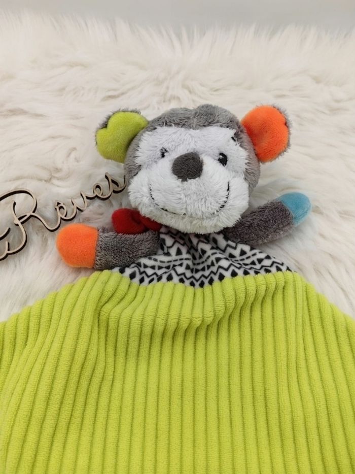 Doudou plat losange singe Multicolore Vert Mots d'enfants - photo numéro 1