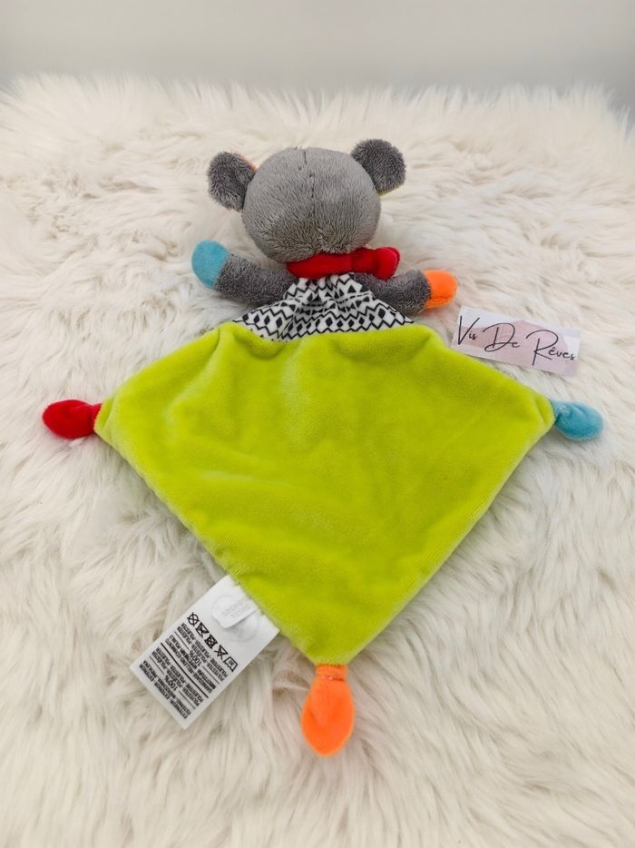 Doudou plat losange singe Multicolore Vert Mots d'enfants