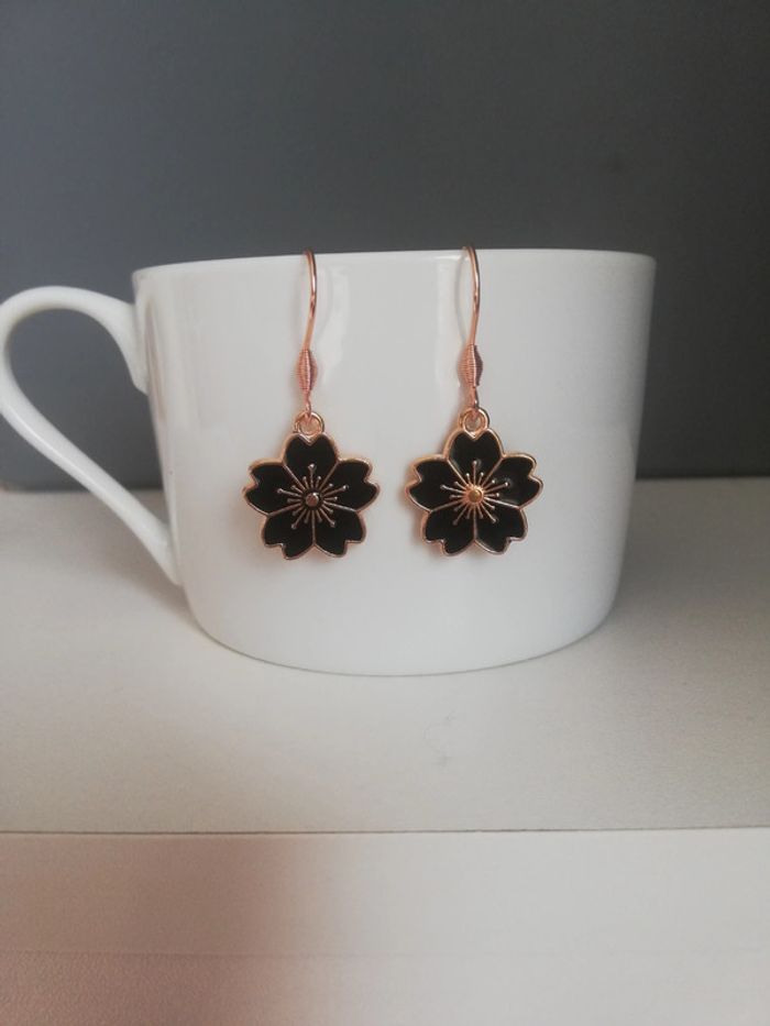 #bijouxbabane Fleurs noires et dorées. Envoi à domicile en France en lettre suivie à 2,20 euros ou mondial relay. Réduction dès 3 articles achetés dans mon dressing