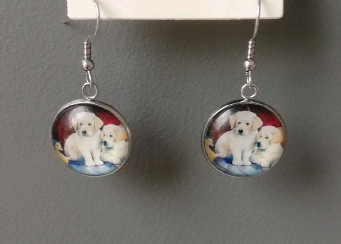 Cabochons 18 mm. Crochets en acier inoxydable.