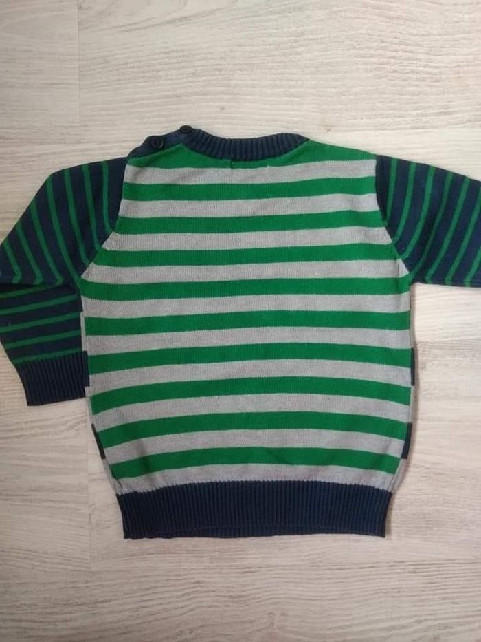 Pull ligné tricolore : bleu marine, gris et vert taille 80cm