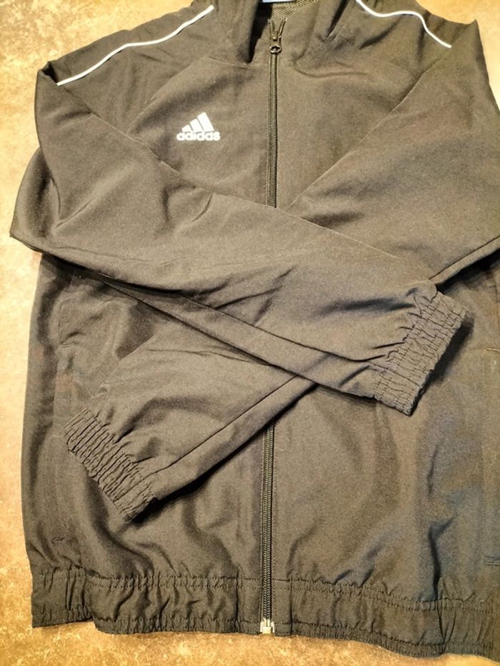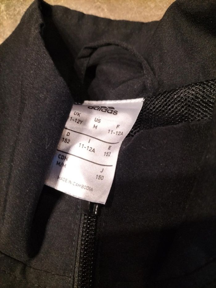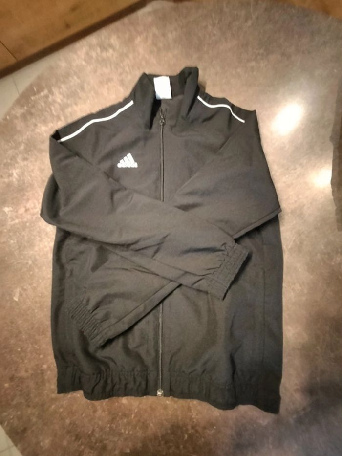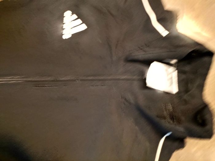 Veste zippée noire adidas en très bon état. 11/12 ans 100% polyester En très bon état, peu portée, comme neuve.