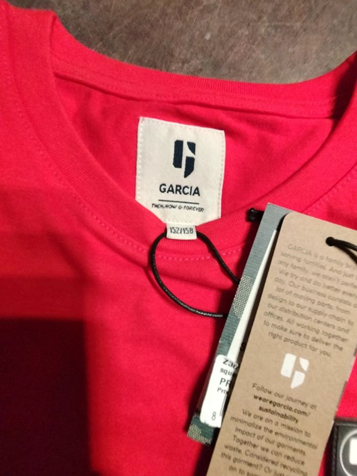 T.shirt MC rouge en 12 ans . 100% coton organic. Garcia
