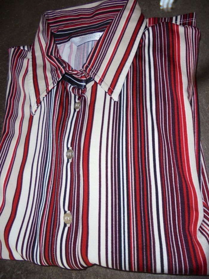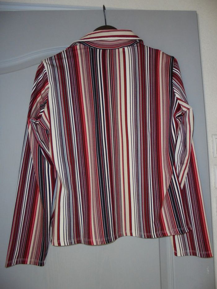 bon état, chemise à rayures manches longues, lycra et élasthanne, plus l'étiquette composition je l'avais découpée.