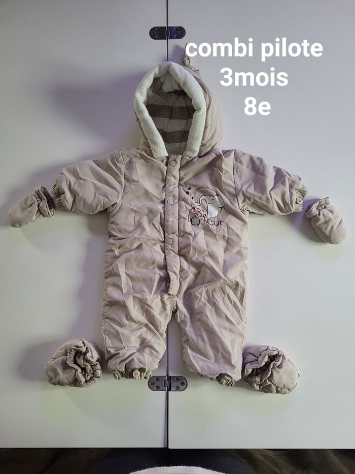 Combi pilote très peu porté. Toutes marques confondues. Chaussons 3 mois neufs 2,5e Gilet chaud 3 mois 5e Combi pilote 62cm 8e