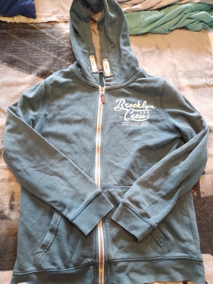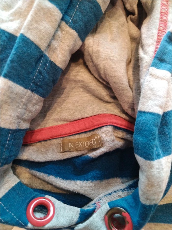 Propose 2 sweats à capuches avec défauts. -Le bleu c&a à zip. Défaut devant niveau fermeture zip mordu et un peu de colle ? Petit trou manche. -Le rayé, marque in extenso, peinture sauté sur les anneaux capuche et 1 léger accroc dans le dos. Étiquette de taille coupée. Tous les défauts sont visibles sur photos. Pour voir les annonces 12 ans appuyez ici - - - > #kat59147garçon12ans