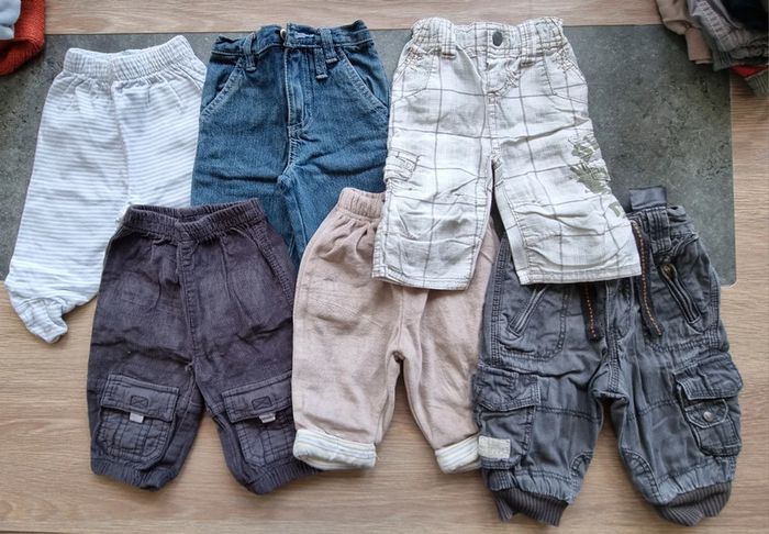 Vends lot de pantalons 3 mois 1 rayé bleu et blanc en coton avec pieds Petit Caïd 1 jean DPAM bébé 1 rayé beige 1 gris velours 1 marron éponge 1 gris cargo H&M 1 blanc avec ouverture entre les jambes petit Kimbaloo 10€ le lot