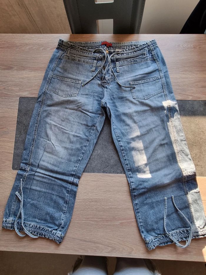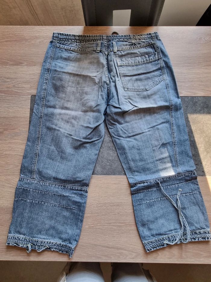 Vends pantacourt avec lien de serrage à la taille et aux mollets. Les taches sur la photo sont le reflet du soleil. Taille 40