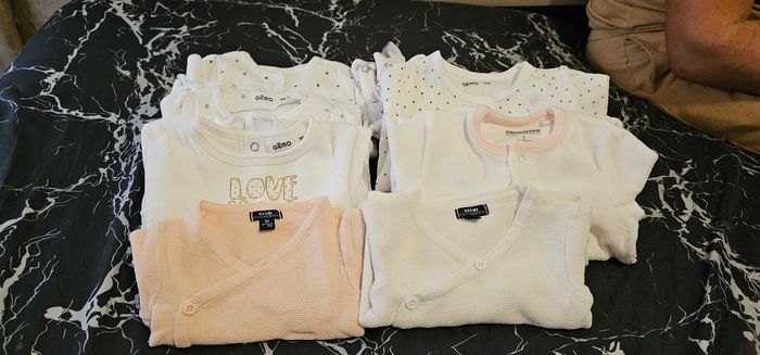 Je vends l'eau de 6 pyjama quasiment neuf de 1 à 6 mois mais à peine quelques fois et je donne avec deux gilets neuf de chez Kiabi